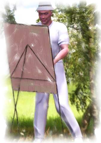 Пан уже ся пущат до роботы, фурт ходит туй-там довгов щѣтков, а на полотнѣ помалу появлят ся и цѣлое обыстя. И дворик, и хлѣвча, щи й курник у закутѣ. Пан вшиток у роботѣ, на Юру и не никат, лем так одповѣдат: